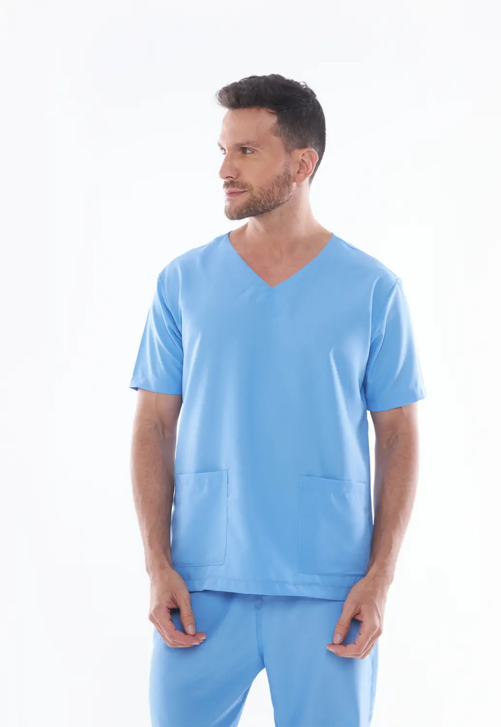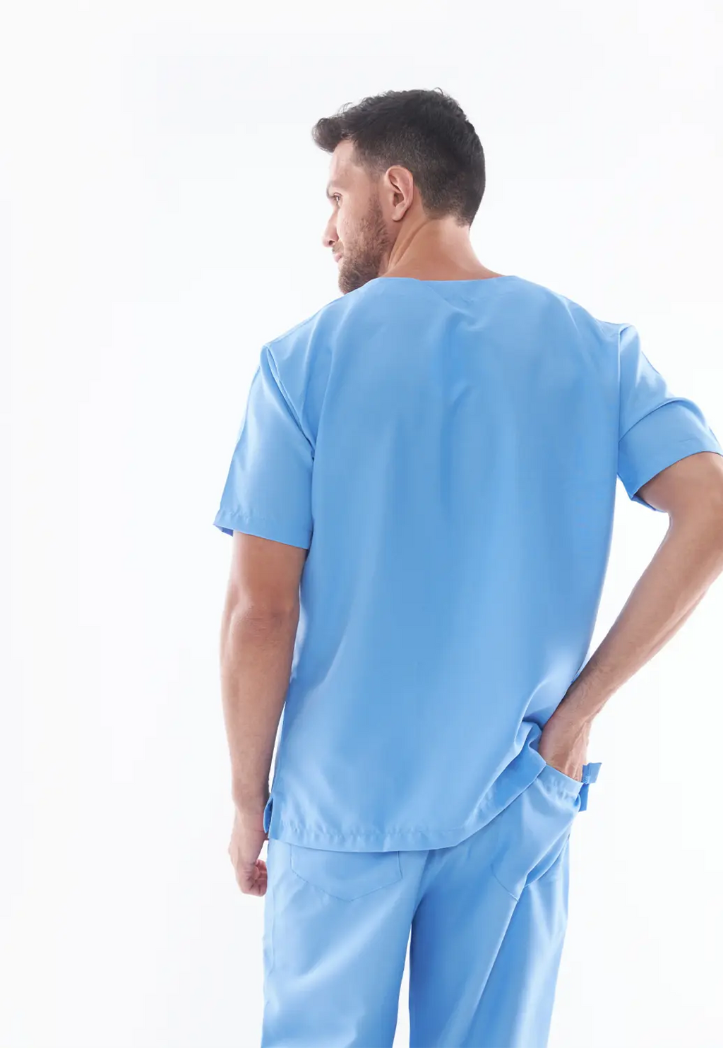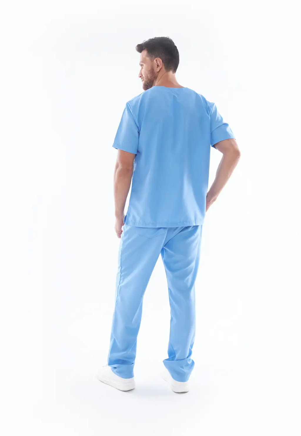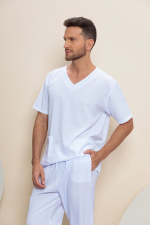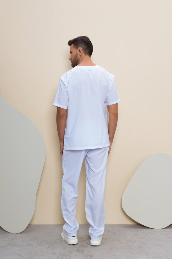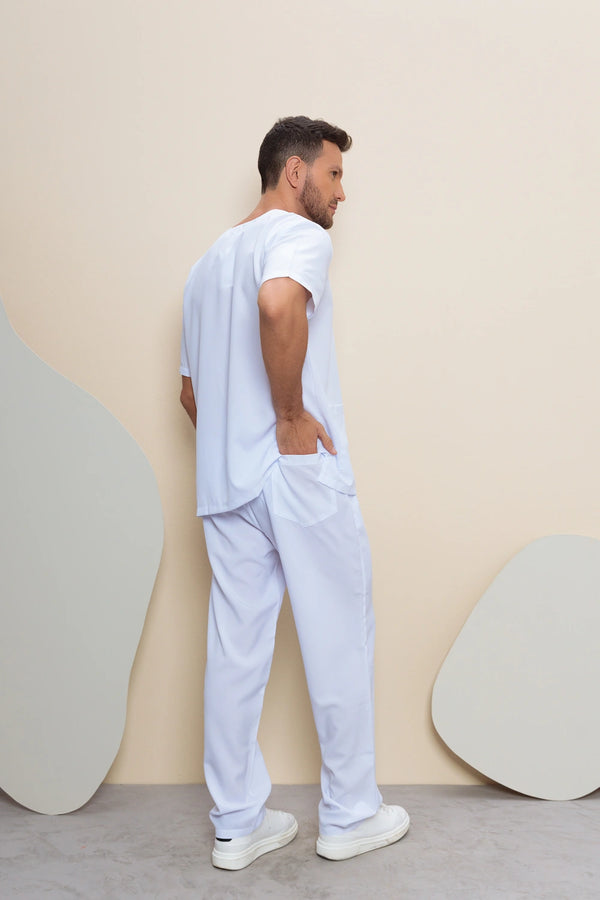 Design masculino com foco em conforto e praticidade, adequado para diversas áreas da saúde.