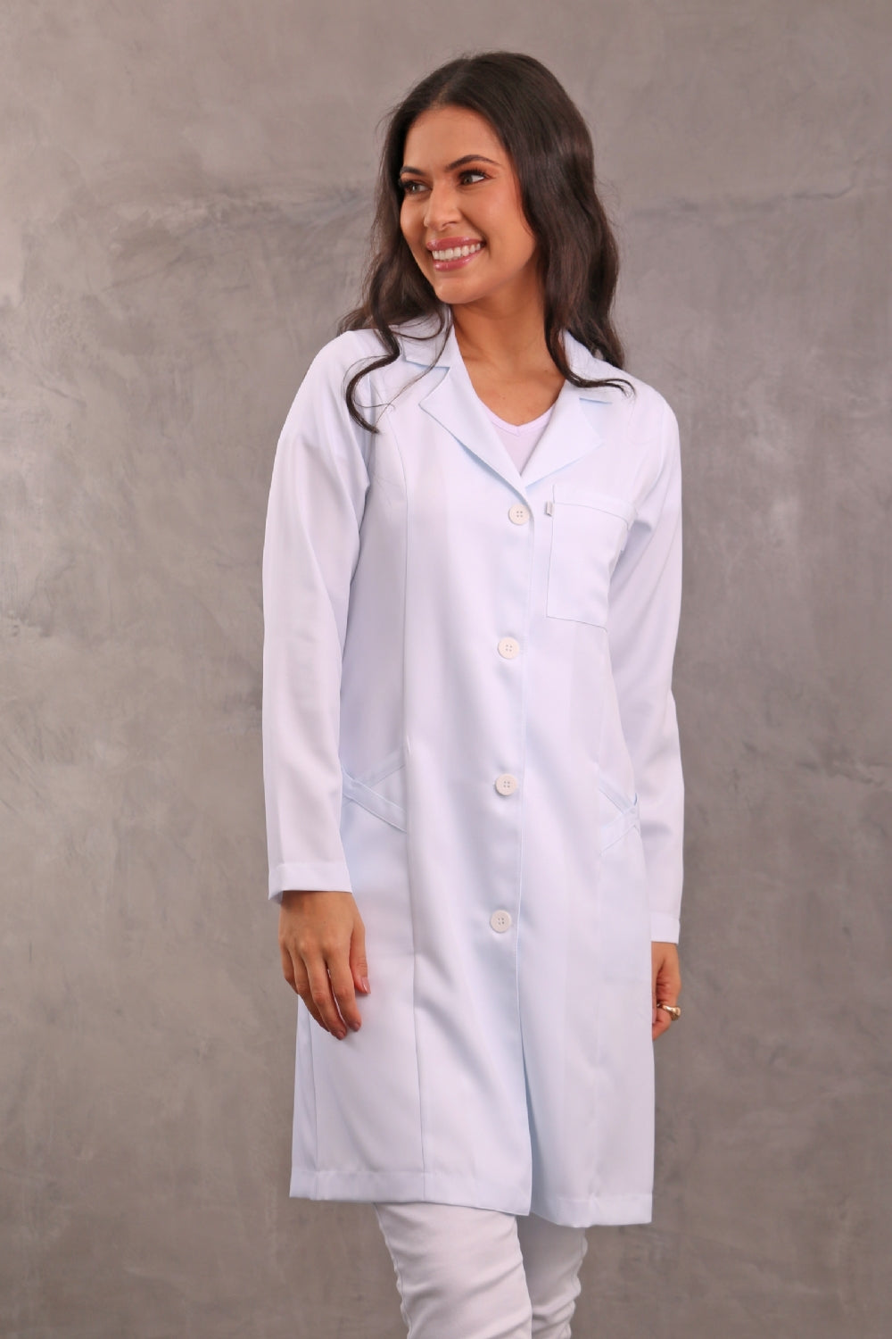 Produzido em gabardine twill 100% poliéster, tem modelagem acinturada e detalhes nos bolsos e no cinto, valorizando a silhueta e trazendo um toque contemporâneo ao uniforme. O tecido twill é resistente, seca rapidamente e praticamente não amassa, facilitando a rotina. Indicado para médicas, enfermeiras, dentistas, esteticistas, manicures e profissionais que buscam unir estilo, praticidade e agilidade no trabalho. Transmite modernidade, cuidado pessoal e uma presença marcante.