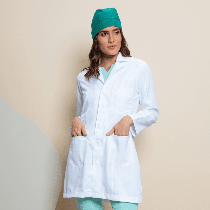 O segredo de um bom jaleco está no tecido. Por isso, escolhemos um material que trabalha a seu favor.